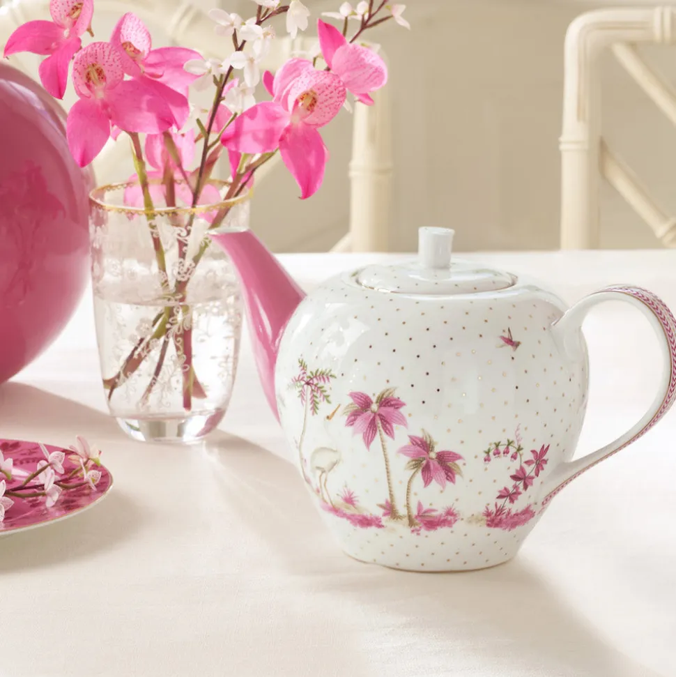 Eine wundervolle Ergänzung zur Jolie Kollektion ist diese traumhafte Teekanne von Pip Studio. Dezente goldfarbene Punkte und rosafarbene Blumen runden das Aussehen der großen Teekanne romantisch ab. Ein Reiher, ein Schwan, fast erzählt sie Dir mit ihrem liebevoll gestalteten Dekor am Tisch eine Geschichte. Lasse auch Du Dich inspirieren.