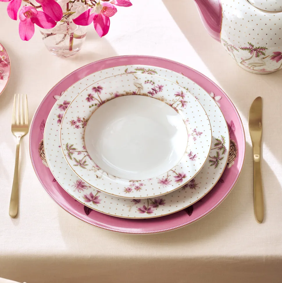 Eine wundervolle Ergänzung zur Jolie Kollektion ist dieser tiefe Teller von Pip Studio. Dezente goldfarbene Punkte und rosafarbene Blumen runden das Aussehen des Tellers romantisch ab. Ein Reiher, ein Schwan, fast erzählt er Dir am Tisch eine Geschichte mit seinem liebevoll gestalteten Dekor. Lasse auch Du Dich inspirieren.