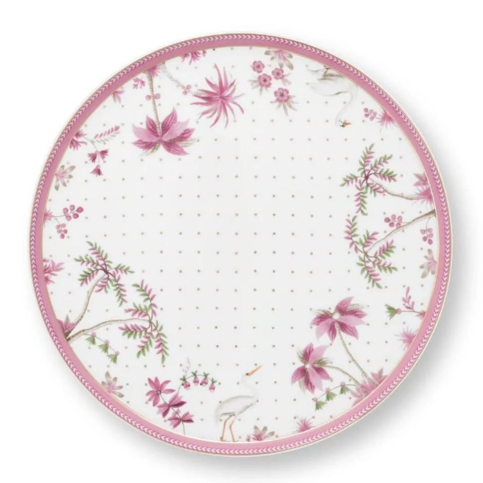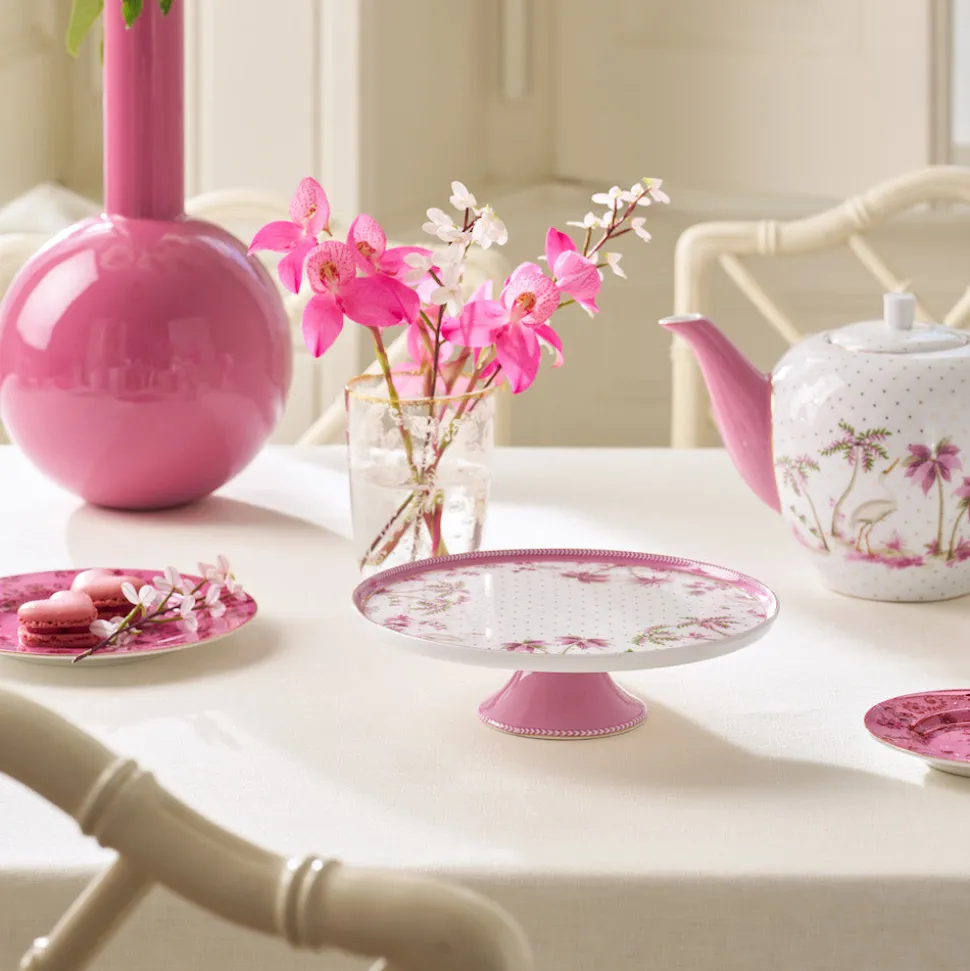 Diese runde Tortenplatte mit ihren rosafarbenen Akzenten wird Dich sofort begeistern. Die 21 cm große Platte ist mit Pflanzen und goldfarbenen Punkten gestaltet und gehört zur Jolie Kollektion von Pip Studio. Ein Reiher, ein Schwan, fast erzählt sie Dir mit ihrem liebevoll gestalteten Dekor am Tisch eine Geschichte. Lasse auch Du Dich inspirieren.