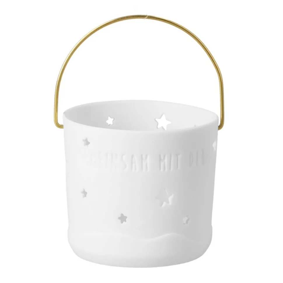 Die kleine Laterne aus Porzellan findet mit ihrer Höhe von 5,5 cm und ihrem Durchmesser von 6 cm überall Platz. Ob im Regal, auf einem Schrank oder Tisch oder auf der Fensterbank. Dank ihres Henkels aus Messingdraht kann man sie sogar aufhängen. Sie bietet ihrerseits Platz für ein Teelicht oder ein LED und spendet so ein bezauberndes Licht, das durch die sternförmigen Löcher nach außen dringen kann.