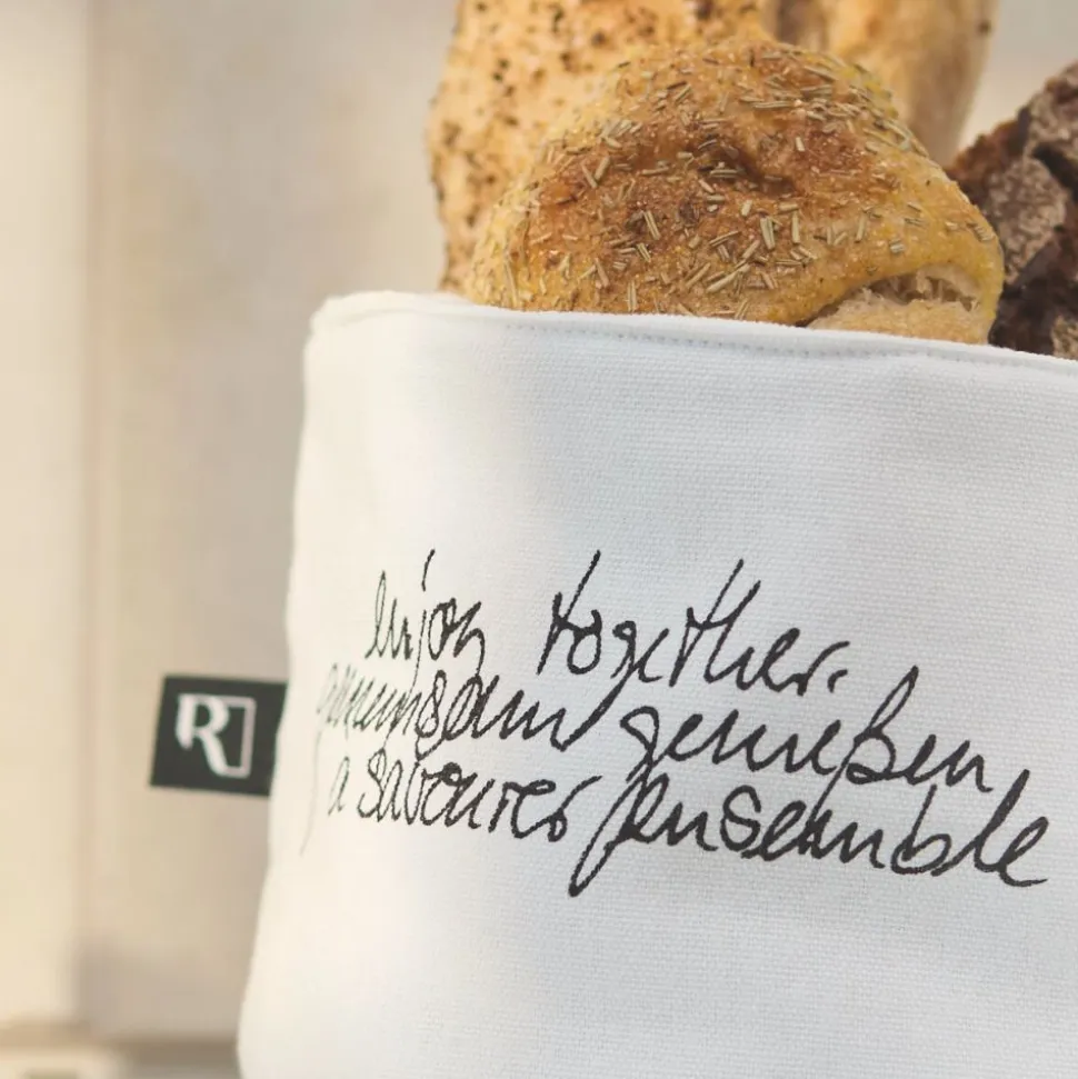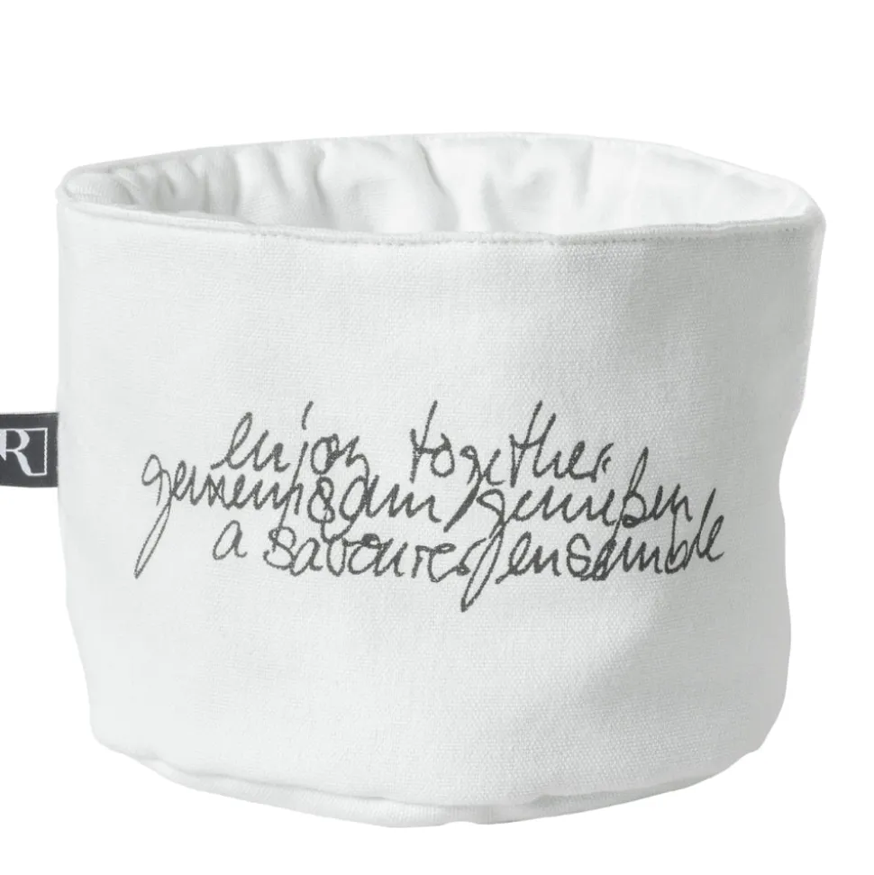 Einfach mal gemeinsam frühstücken. Manchmal sind es die kleinen Dinge, die große Freude machen – ein gutes Stück Brot, ein lieber Mensch an Deiner Seite und ein Moment, den man teilt. Der Räder Brotkorb Gemeinsam genießen erinnert Dich genau daran: Genuss ist am schönsten, wenn man ihn teilt.Aus weichem Stoff gefertigt und mit viel Liebe zum Detail gestaltet, bietet der Brotkorb Platz für frische Brötchen, duftendes Baguette oder kleine Häppchen. Die Botschaft Gemeinsam genießen findest Du gleich in mehreren Sprachen. Sie macht ihn nicht nur zu einem praktischen Tischbegleiter, sondern auch zu einem echten Herzensstück.Ob beim gemütlichen Sonntagsfrühstück, beim Abendbrot mit Freunden oder beim kleinen Picknick – dieser 17 x 12 cm große Brotkorb bringt Liebe und Zusammengehörigkeit auf den Tisch. Er passt mit seinem schlichten, natürlichen Design wunderbar zu jeder Tischdekoration und lässt sich hervorragend mit weiteren Produkten aus der Räder Dining-Serie kombinieren.Mit kleinen selbstgebackenen Küchlein bestückt, kannst Du ihn auch wunderbar verschenken – an Menschen, mit denen Du gerne teilst: Zeit, Genuss und schöne Erinnerungen.Denn gemeinsam schmeckt’s einfach besser. Und mit dem Räder Brotkorb servierst Du nicht nur Brot, sondern auch ein Stück Geborgenheit.