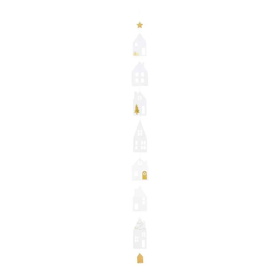 Wenn Dir noch genau die richtige Weihnachtsdekoration für die Tür, das Fenster, oder eine Wand fehlt, haben wir mit der Räder Häuschenkette Winterstadt genau das Richtige gefunden. 83,5 cm ist die Räder Kette lang und erinnert an eine Straße mit lauter festlich geschmückten Häuser. Eine schöne Nachbarschaft verziert mit goldfarbenen Lichterketten, Tannenbäumen, Geschenken und Sternen.