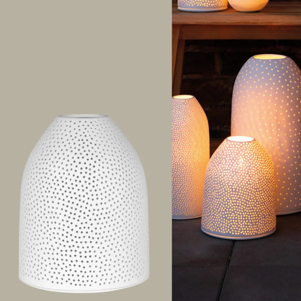 Dieses große weiße Himmelszelt von Räder darf in Deiner Adventsdekoration nicht fehlen. Durch die unzähligen kleinen Löcher schimmert das Kerzenlicht wie Sterne am Nachthimmel. Die 20 cm hohe Laterne wurde aus unglasiertem Porzellan gefertigt und wirkt am besten mit einer kleinen Lichterkette im Inneren. Probiere es gleich aus und lasse Dich von den leuchtenden Räder-Produkten verzaubern.