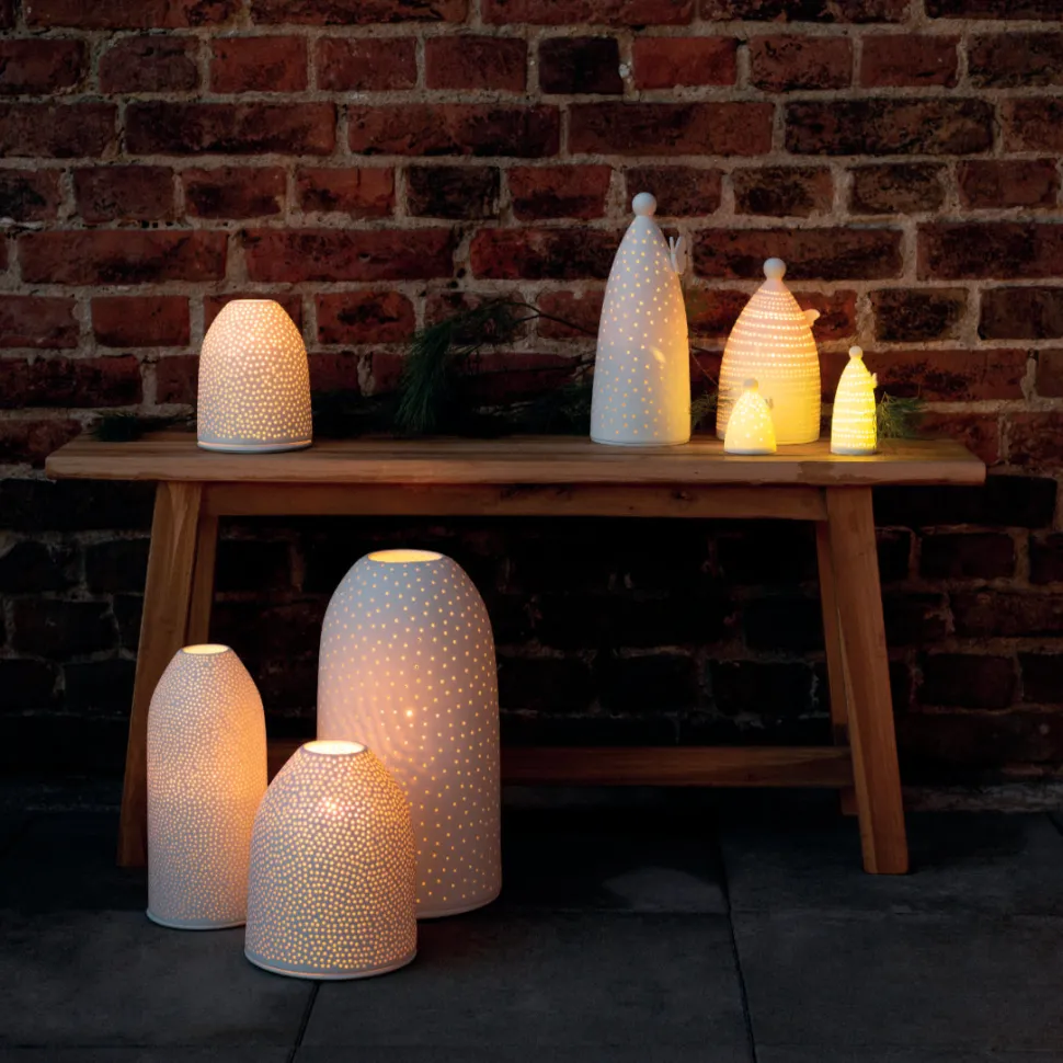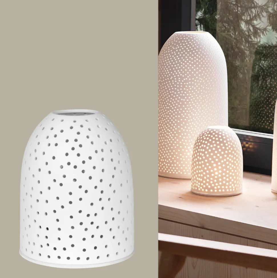 Dieses weiße Himmelszelt von Räder darf in Deiner Adventsdekoration nicht fehlen. Durch die unzähligen kleinen Löcher schimmert das Kerzenlicht wie ein Sternenhimmel in der Nachtl. Die 15 cm hohe Laterne wurde aus unglasiertem Porzellan gefertigt und wirkt am besten mit einer kleinen Lichterkette im Inneren. Probiere es gleich aus und lasse Dich von den leuchtenden Räder-Produkten verzaubern.
