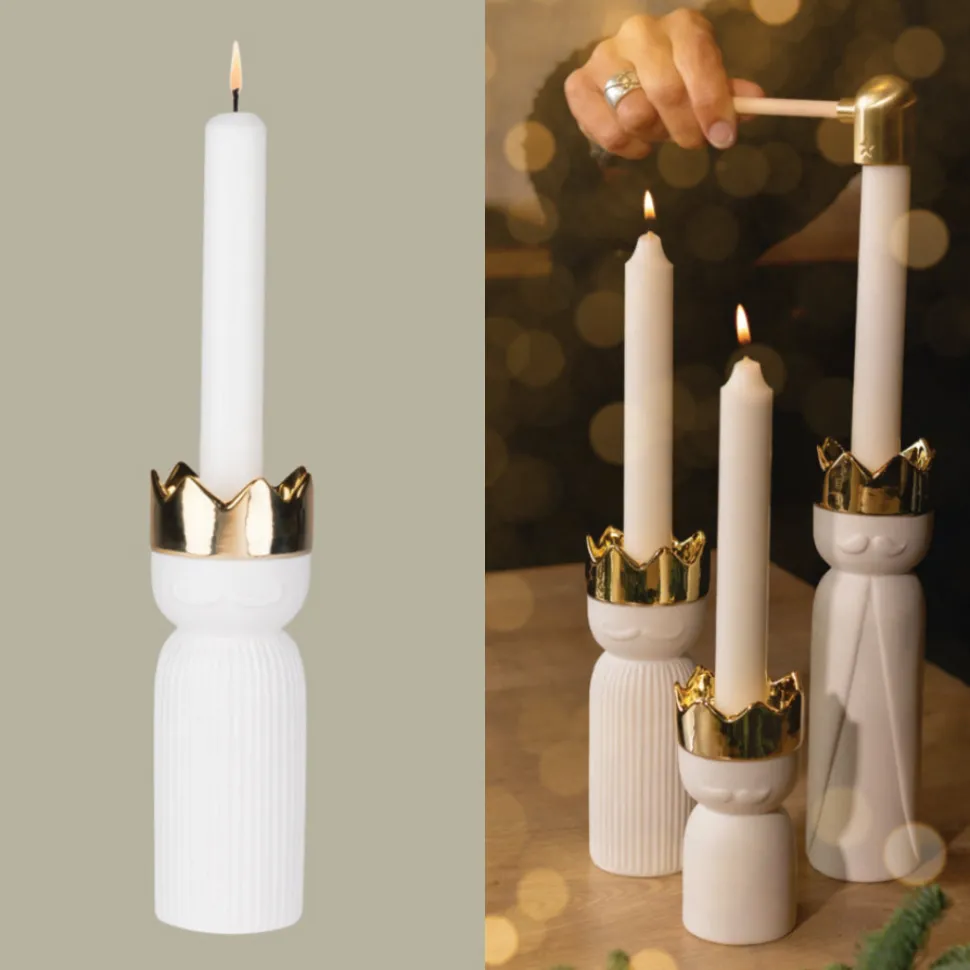 Na, wer zieht denn da bei Dir ein? Es ist Melchior, in Gestalt des Räder Porzellan-Königslicht! Einer der drei Heiligen Könige, einer der Weisen aus dem Morgenland. Wie auch damals in Bethlehem kommt er mit froher Kunde und möchte gemeinsam mit Dir das Weihnachtsfest einläuten, um an die Geburt von Jesus Christus zu erinnern. Mit einer goldfarbenen Krone geschmückt kommt das Räder Königslicht zu Dir nach Hause, um mit seinem Kerzenschein für festliche Stimmung zu sorgen. Werden die anderen Könige, Balthasar und Caspar, vielleicht auch noch ihren Weg zu Dir finden?