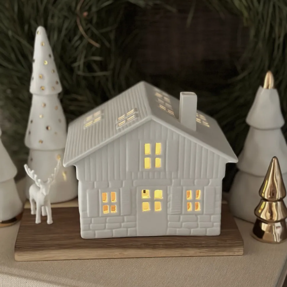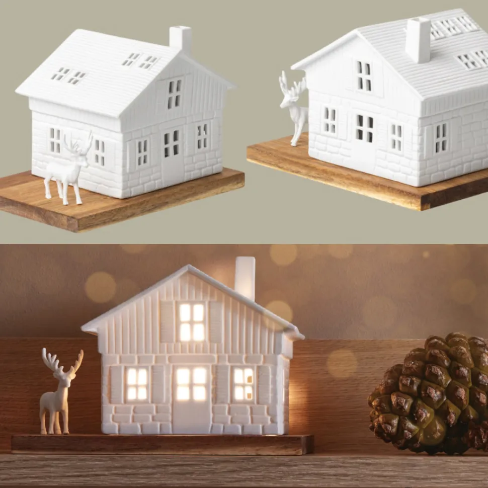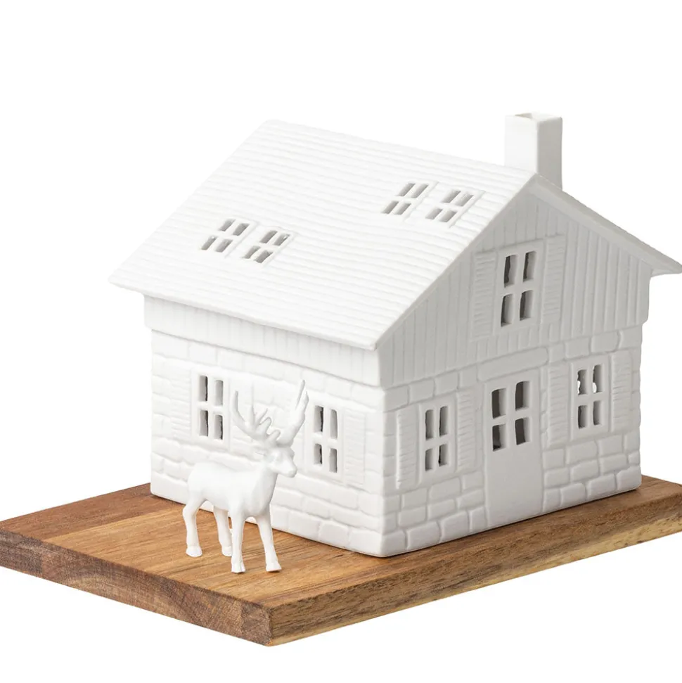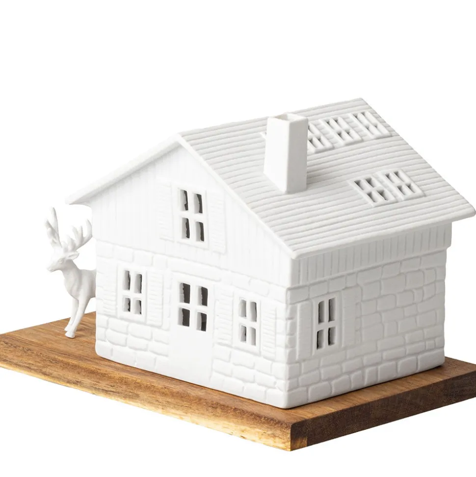 Das Lichthaus Skihütte von Räder wird in der schönsten Zeit des Jahres alle Blicke auf sich ziehen. Die Skihütte aus Porzellan steht auf einer Platte aus unbehandeltem Akazienholz. Neben der Hütte ist Platz für den beiliegenden Hirsch, den König des Waldes, der neugierig um die Skihütte läuft. Gerne kannst Du die Holzplatte noch dekorieren, oder den modernen Stil von Räder für sich sprechen lassen. Schnappe Dir ein Leuchtmittel Deiner Wahl und hauche dem Lichthaus Leben ein, sodass es zum festlichen Hingucker in Deinem Zuhause werden kann. Entdecke weitere Produkte für Dein Weihnachtsfest von Räder hier in unserem Shop.