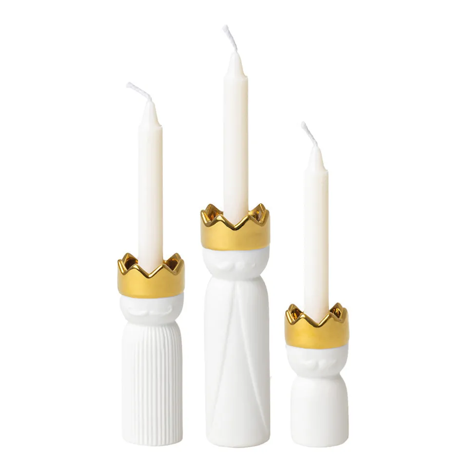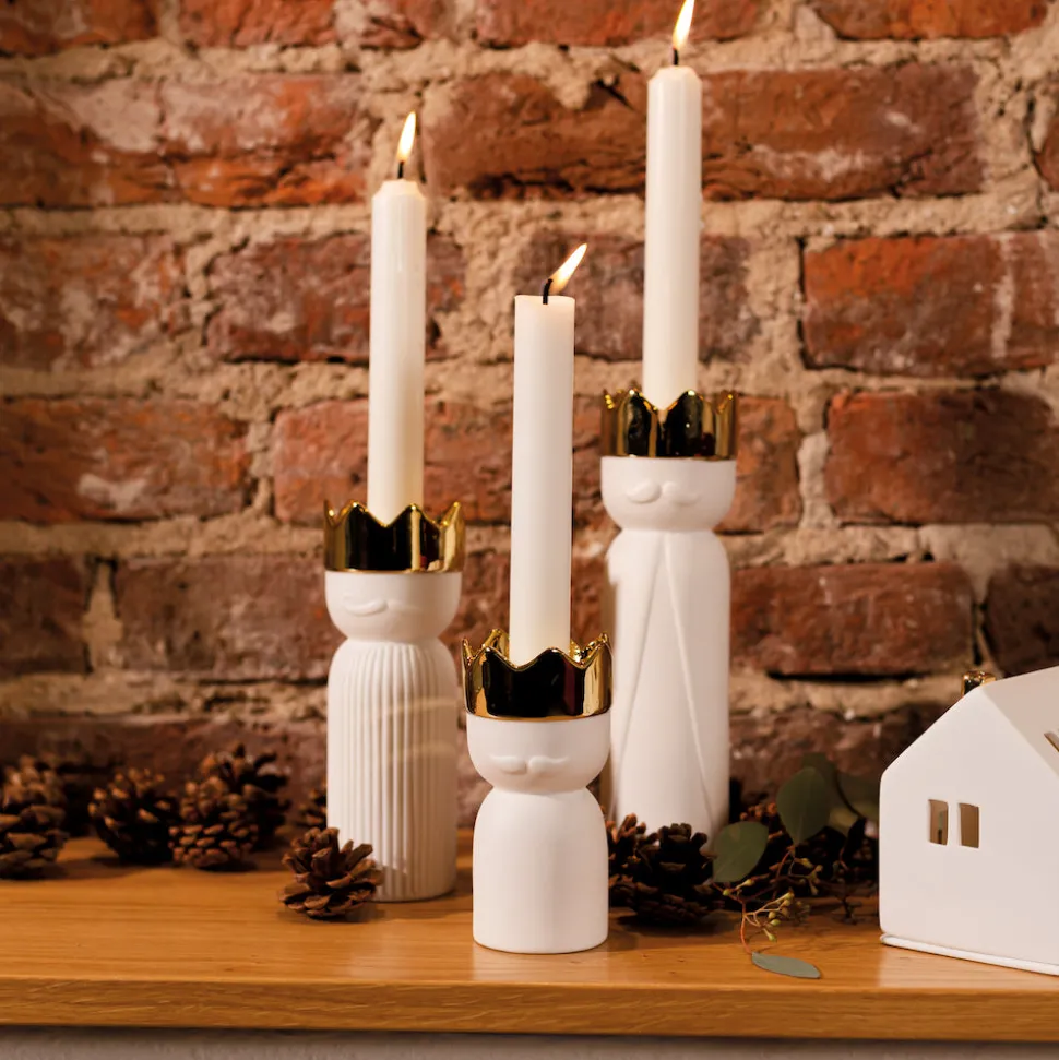 Caspar, Melchior und Balthasar kommen in diesem Jahr in Form der Räder Mini Königslichter im 3er-Set zu Dir nach Hause, um die frohe Botschaft zu verkünden. Die drei heiligen Könige aus dem Morgenland bestehen aus Porzellan und haben oben eine Aussparung für eine kleine Kerze, deren Licht auf so schöne und festliche Weise von den goldfarbenen Kronen widergespiegelt wird. Entdecke weitere Produkte von Räder für Dein Weihnachtsfest hier in unserem Shop.