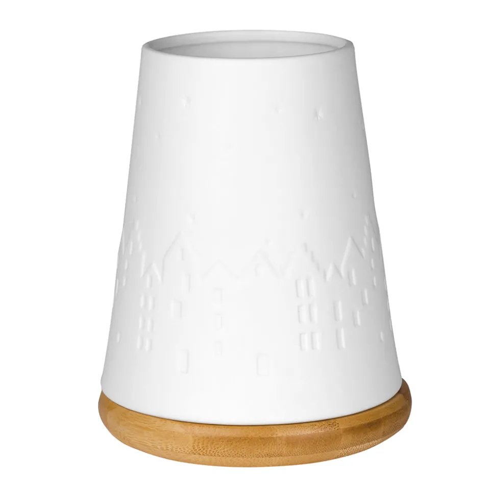 Wohlfühlstimmung kommt auf wenn die Winterstadt des Räder Poesie Windlichts anfängt zu strahlen. Setze dafür einfach ein Teelicht auf das Holz und schon dringt der Schein sanft durch das Porzellan und haucht der Winterstadt Leben ein. Das Windlicht von Räder hat eine Höhe von 16,5 und einen Durchmesser von 12,8 cm.