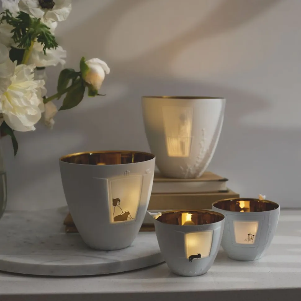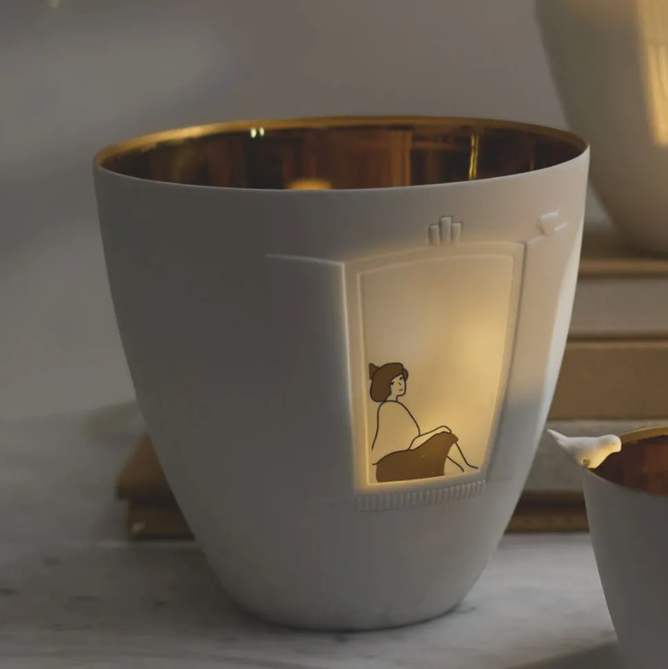 Setze Dich ans Fenster und genieße die kühle Herbstluft. Atme tief durch, beobachte die Spatzen in den Bäumen und lausche der Natur. Dieses Poesielicht von Räder hilft Dir, für einen kurzen Moment dem Alltag zu entfliehen.Das zarte Windlicht aus feinem, weißen Porzellan ist mit filigranen Ranken und einem Fenstermotiv verziert. Im Inneren findest Du eine goldfarbene Beschichtung, die beim Kerzenschein zum Leben erwacht. Sobald Du ein Teelicht hineinstellst, entsteht ein warmes, sanftes Lichtspiel. Es macht Freude, immer wieder hinzusehen.Ob auf dem Nachttisch, im Wohnzimmer oder als liebevolles Detail auf dem gedeckten Tisch, das märchenhafte Poesielicht schenkt Dir Ruhe, Geborgenheit und ein kleines Lächeln. Es ist auch eine wunderbare Geschenkidee für Menschen, denen Du sagen möchtest: Du bist es mir wert!Lehne Dich zurück und tauche in die Geschichten von Räder, werde Teil von Ihnen und vergiss den Alltag für einen wertvollen Augenblick.