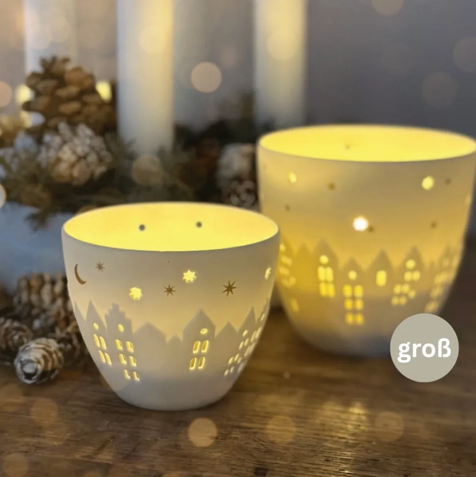 Das Räder Poesielicht Häuser ist perfekt um einen Abend in gemütliche und romantische Stimmung zu hüllen. Der Winterstadt wird Leben eingehaucht und der Sternenhimmel fängt an zu scheinen, wenn Du ein Teelicht in das Räder Porzellan-Poesielicht setzt.
