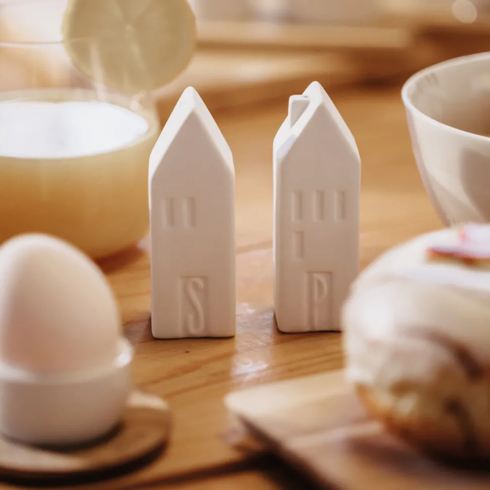 Die kleinen Salz- und Pfefferstreuer S & P von Räder sehen wirklich ein bisschen aus wie kleine Lichthäuser. Die Streuer sind aus feinstem Porzellan gefertigt, das unglasiert ist und an Türen und Fenstern kleine Vertiefungen hat. Auf den Haustüren findest Du die Buchstaben S und P, damit es keine Verwechslungsgefahr gibt. Die Häuser haben eine Größe von 3 x 3 x 9 cm und passen damit perfekt auf jeden gedeckten Tisch. Den Verschluss für die Streuer findest Du auf der Unterseite, damit Du Salz und Pfeffer einfüllen kannst. Und dann kann fleißig gewürzt werden. Etwas Schärfe und Würze hat schließlich noch nie geschadet, oder?