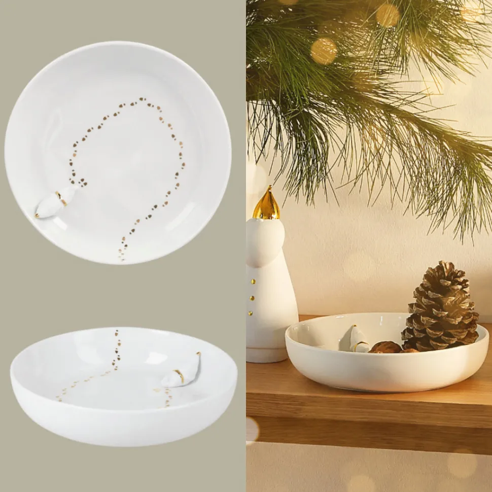 Wenn er dann aus seinem kleinen Traum aufwacht, hat er vielleicht den Duft von Weihnachtsgebäck in der Nase. Denn das hast Du vielleicht gerade in die mit einem Durchmesser von 20 cm üppig bemessene Schale gelegt. Oder waren es ein paar Nüsse?