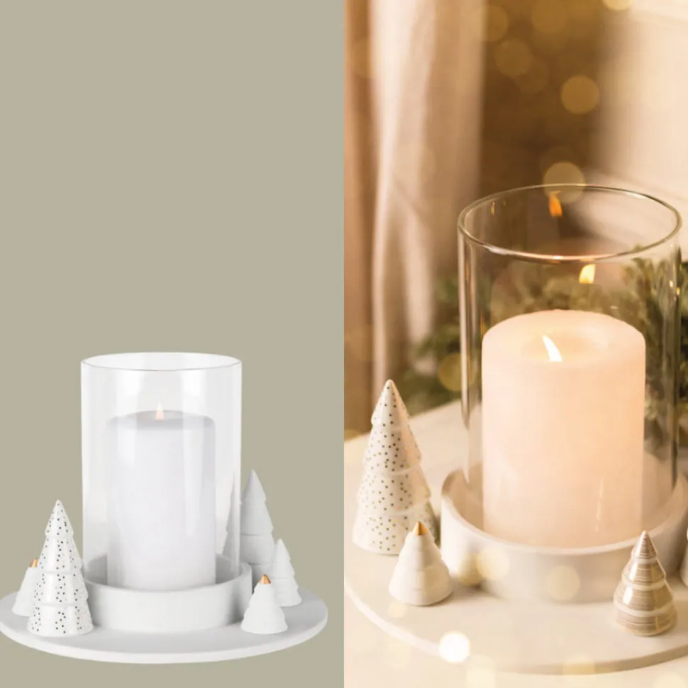 Das Räder Tannen Windlicht ist unser neuer Favorit. Zur Weihnachtszeit kannst Du nun im schönen Kerzenschein sitzen, ohne, dass der Wind Dir die gemütliche Stimmung raubt. Die Porzellan-Tannen des Räder Windlichts um das zylinderförmige Glas herum erinnern Dich an einen schneebedeckten Wald, der im Licht leicht zu strahlen beginnt. Einfach romantisch!