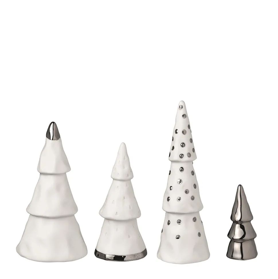 Mit dem silberfarbenen Räder Weihnachtswald bekommst Du ein 4er-Set mit Tannen, die nicht unterschiedlicher sein könnten! Egal ob Du sie zusammen oder getrennt aufstellst, die Tannen verbreiten festliche Weihnachtsstimmung in Deinem schönen Zuhause. Besonders abends wenn all die schönen Weihnachtslichter angezündet und eingeschaltet werden, strahlt der Räder Weihnachtswald in einem tollen Glanz.