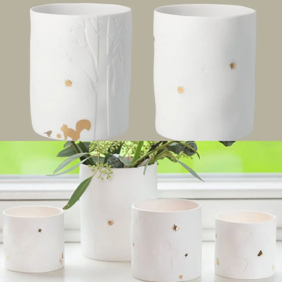 Wenn Du jetzt ein Teelicht oder ein LED in diesen Halter aus unglasiertem Porzellan stellst und das Licht aufleuchten, dann kannst Du dem Eichhörnchen helfen, weil der Stern nun noch heller scheinen wird und die Landschaft zum Leuchten bringt.