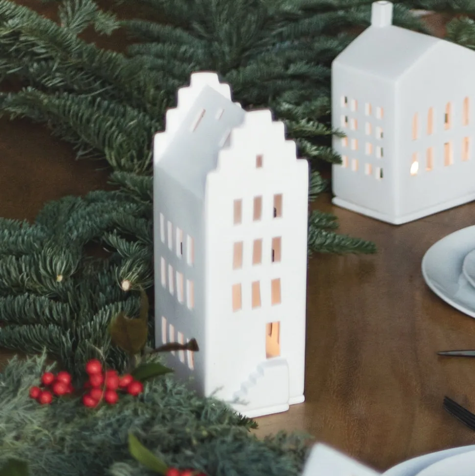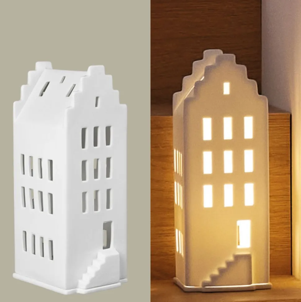 Lass Dich verzaubern von dem Räder Lichthaus Giebeldach – sei es von der seitlichen Treppe, dem Dach oder den langen Fenster durch die jeder Kerzenschein besonders gut aussieht. Mit seiner Höhe von 20 cm sorgt das Lichthaus Giebeldach für einen echten Blickfang in Deinem Zuhause! Die 8 x 10 cm Bodenplatte unter dem Haus dient als Abstellfläche für Dein Teelicht.