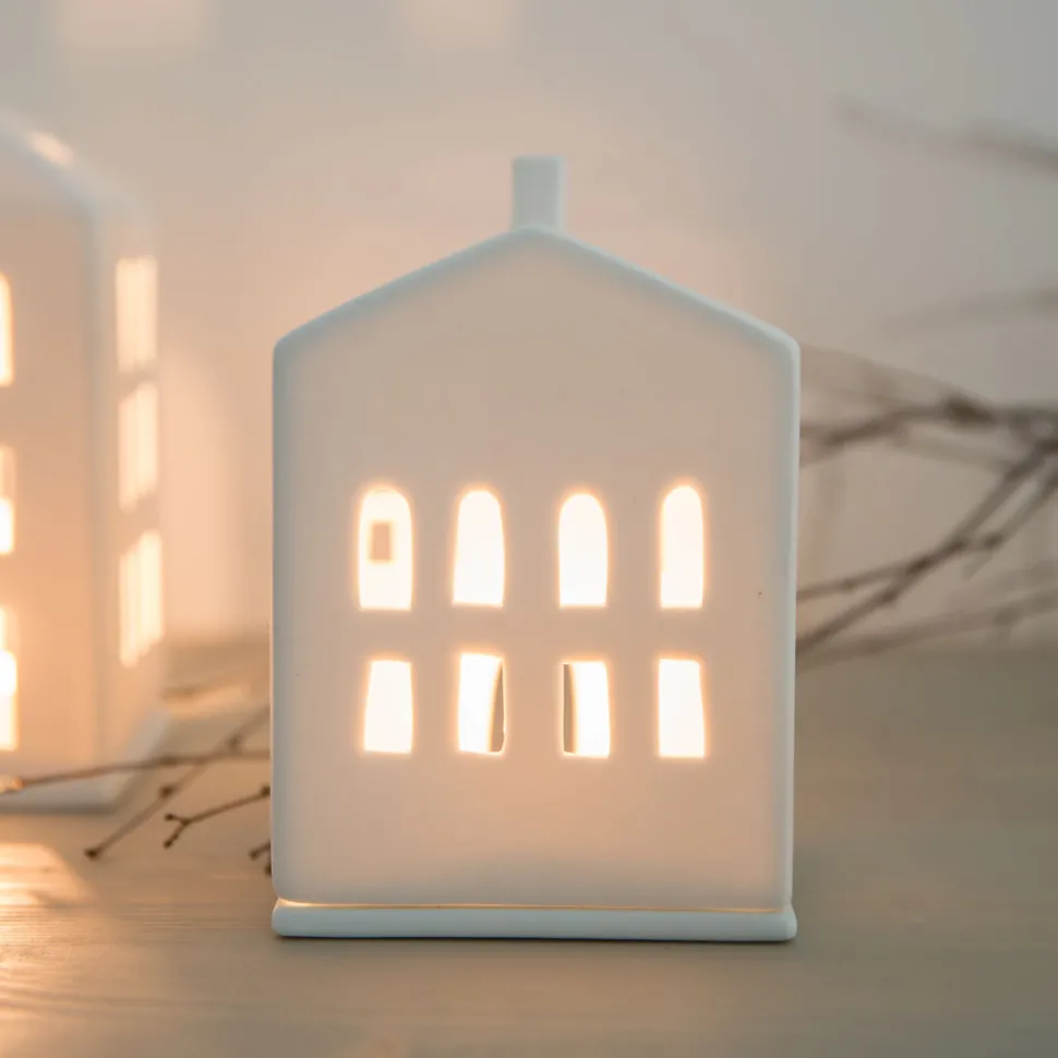 Das weiße Lichthaus von Räder mit seiner runden Tür ist aus feinstem Porzellan handgefertigt. Ob mit einem Teelicht oder mit einer Lichterkette bestückt – das Häuschen verbreitet ein angenehmes Licht und lädt zum Träumen ein. Eine Porzellanplatte dient als Untergrund für das Teelicht. Lasse auch Du Dich von unseren Räder-Produkten verzaubern.