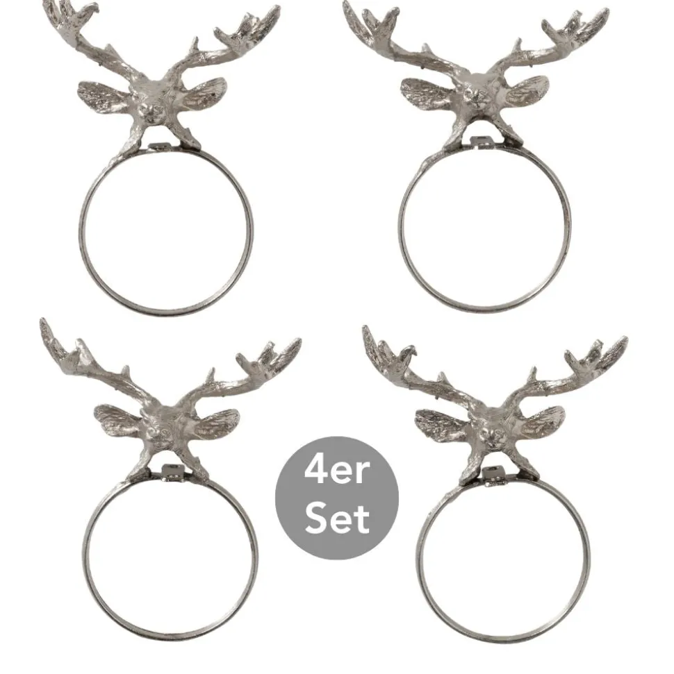 Serviettenring Hirsch Jarle 4er Set silberfarben