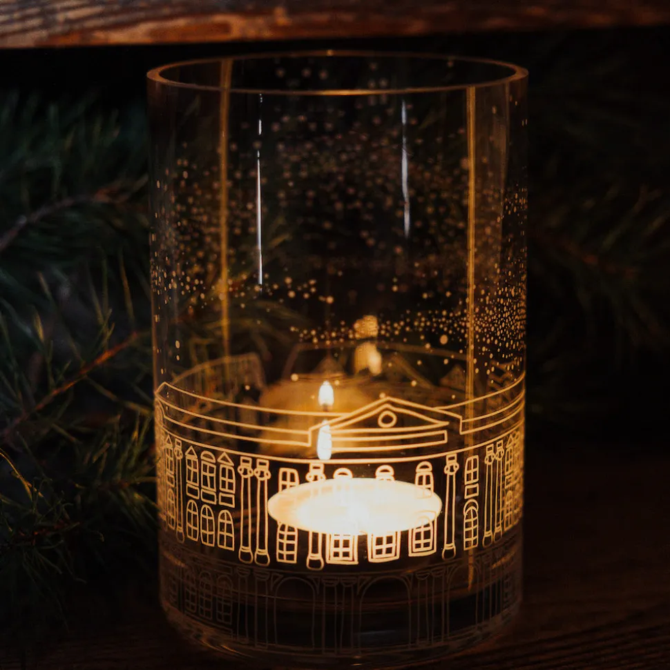 Der Storefactory Teelichthalter Hus in L aus Glas, ca. 12 x 18 cm, zaubert mit seiner weißen Häuserreihe rundherum eine winterliche Atmosphäre. Perfekt für stimmungsvolle Beleuchtung auf dem Adventstisch, im Fenster oder als festliche Dekoration im Wohnzimmer. Mit einem Teelicht bestückt, verbreitet der Teelichthalter von Storefactory ein warmes Licht und lässt die Weihnachtsträume lebendig werden.