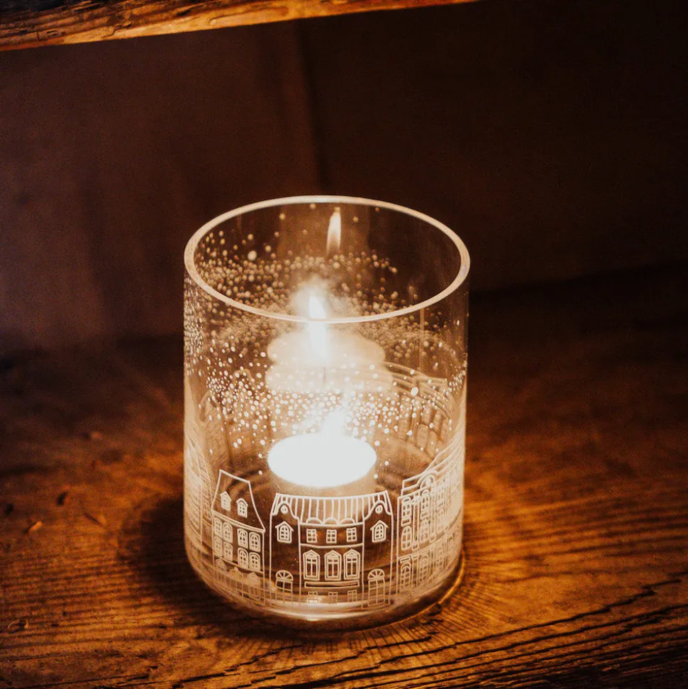 Der Teelichterhalter Hus in M von Storefactory bringt festliche Stimmung in Dein Zuhause. Aus Glas gefertigt, zeigt er eine zauberhafte Häuserreihe, die an eine verschneite Stadt erinnern. Mit seinen Maßen von ca. 10 x 12 cm eignet er sich perfekt als stimmungsvolle Dekoration für den Tisch, das Fensterbrett oder als gemütlicher Begleiter auf dem Kaminsims. Lasse Dich von sanften Lichtern und winterlichem Charme verzaubern.
