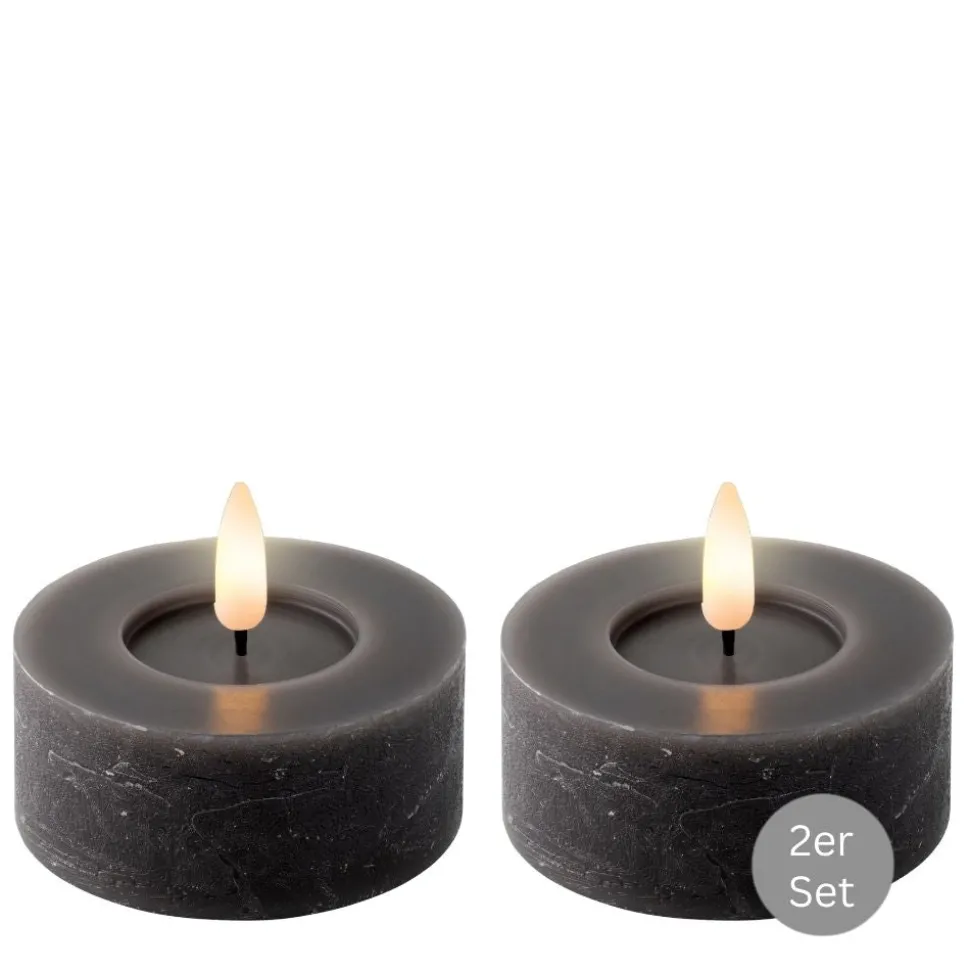 Teelicht LED Flackereffekt 2er Set D 7cm grau