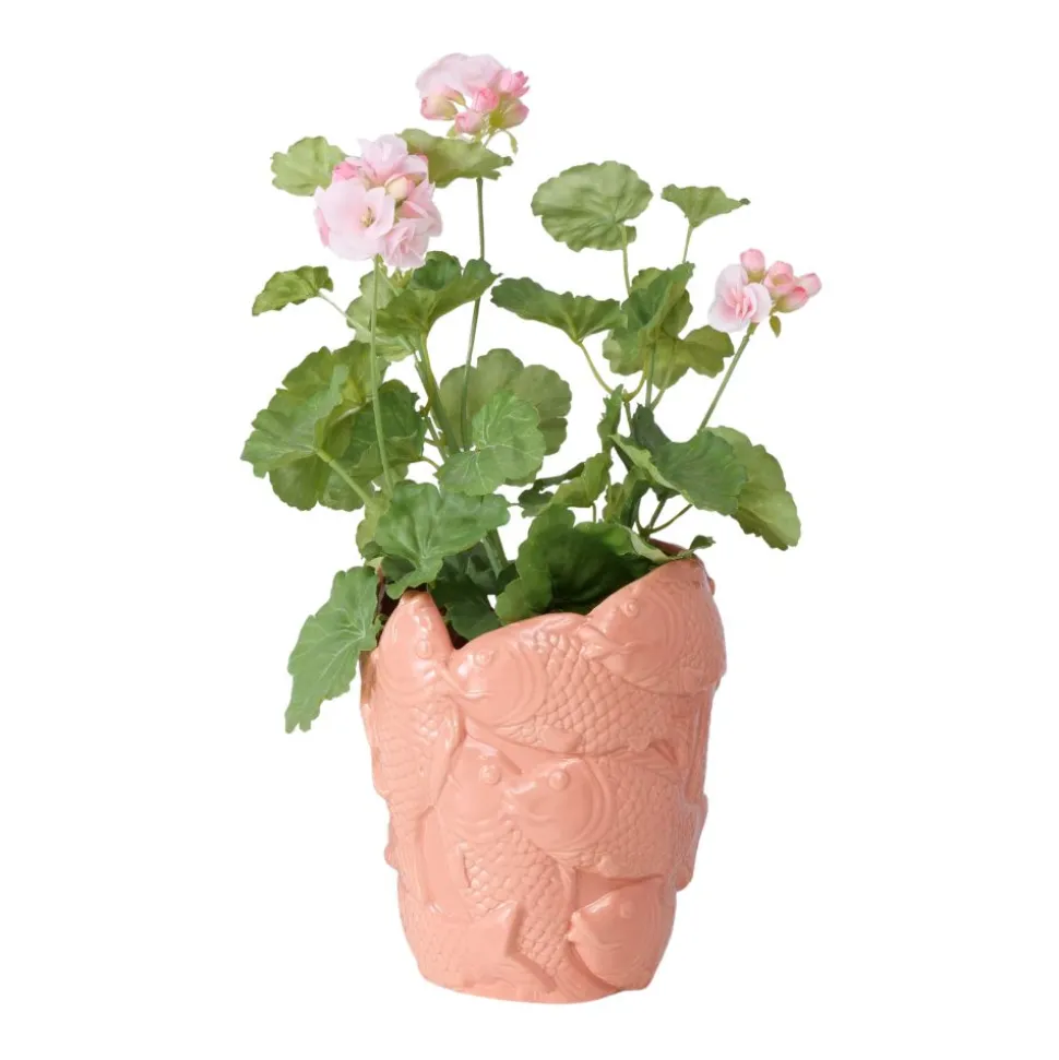 Fans des Maritimen werden sich sofort in den nautischen Übertopf verlieben! Die rosafarbenen Fische schwimmen wie ein Schwarm um den Topf herum und verleihen ihm so das gewisse Etwas. Besonders auf dem Tisch oder der Fensterbank wird der Übertopf Deine Blumen auf verspielte Weise in Szene setzen.