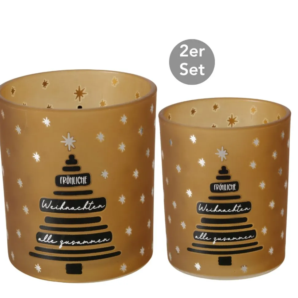 Diese Windlichter im 2er-Set bringen warmes Licht und herzliche Weihnachtsgrüße in Dein Zuhause. Mit dem Schriftzug Fröhliche Weihnachten schaffen sie im Handumdrehen eine festliche Atmosphäre. Ob auf dem Tisch, der Fensterbank oder im Eingangsbereich – das sanfte Kerzenlicht sorgt für gemütliche Momente und macht die Adventszeit noch ein bisschen besonderer. Verschenke Licht und Freude oder genieße selbst die stimmungsvolle Ausstrahlung – dekorativ, liebevoll und perfekt für ein heimeliges Weihnachtsgefühl.