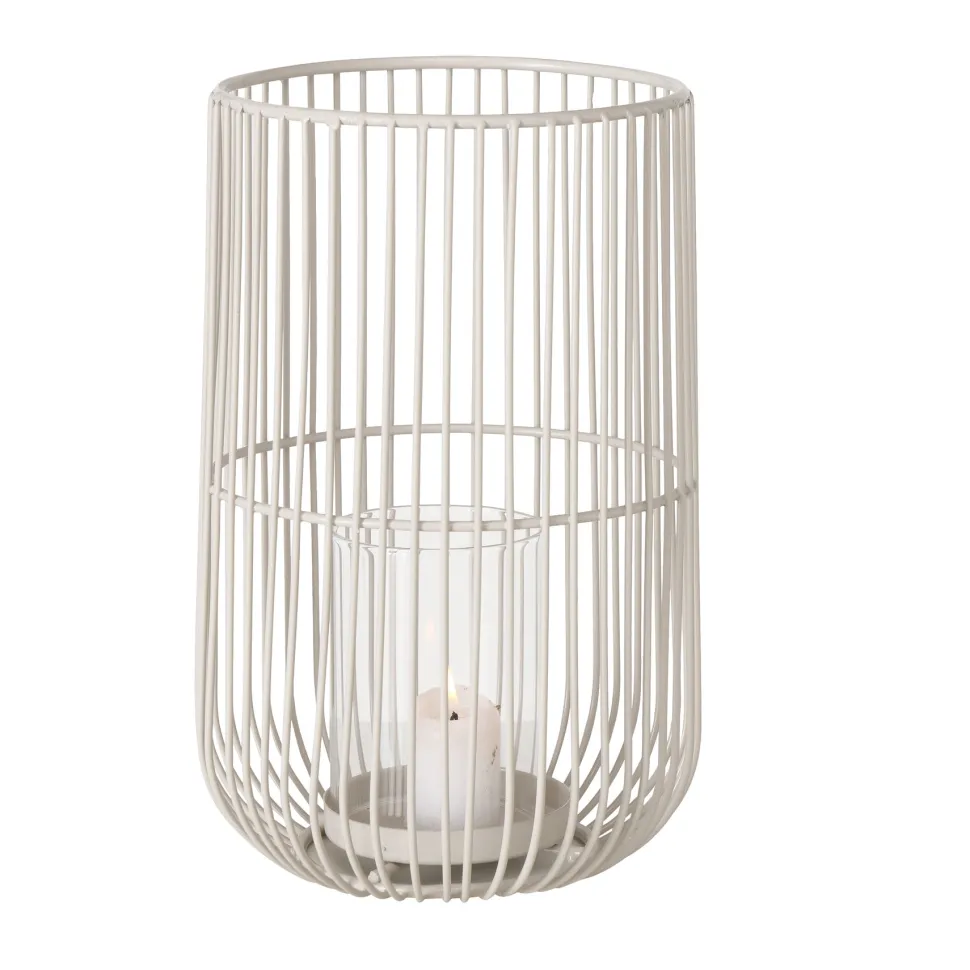 Kleiner aber oho! Das ist unser Windlicht Joris in Beige. Mit seiner Größe von 25 x 15 cm ist es gar nicht mal so klein und sorgt in Deinem Zuhause garantiert für einen tollen Blickfang. Besonders am Abend kann das Windlicht aus Eisen für eine schöne Stimmung sorgen, wenn erst einmal das Licht durch die viele Streben fällt. Übrigens befindet sich ein zylinderförmiges Glas im Inneren, sodass ein Teelicht oder eine Kerze dort Platz finden können.