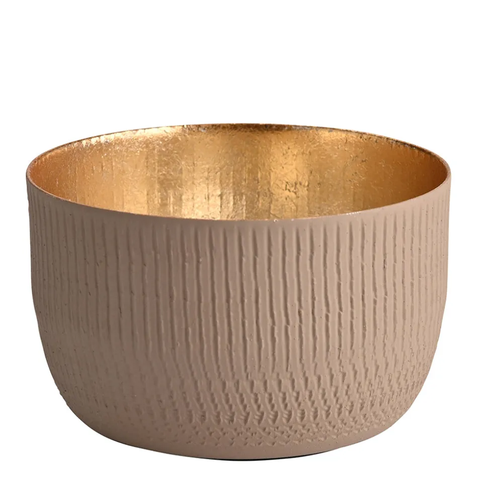 Dieses kleine Windlicht mit seinen feinen Rillen ist ein echter Hingucker. Mit seinem Durchmesser von 8 cm fasst es bequem ein Teelicht. Kombiniere das kleine beige-goldfarbene Licht doch mit anderen Kerzenhaltern und schaffe Dir eine Atmosphäre zum Träumen und Genießen.