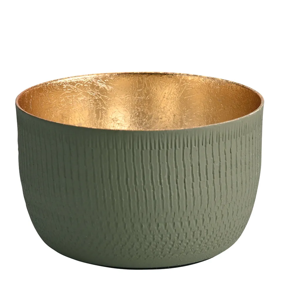 Dieses kleine Windlicht mit seinen feinen Rillen ist ein echter Hingucker. Mit seinem Durchmesser von 8 cm fasst es bequem ein Teelicht. Kombiniere das kleine olive-goldfarbene Licht doch mit anderen Kerzenhaltern und schaffe Dir eine Atmosphäre zum Träumen und Genießen.