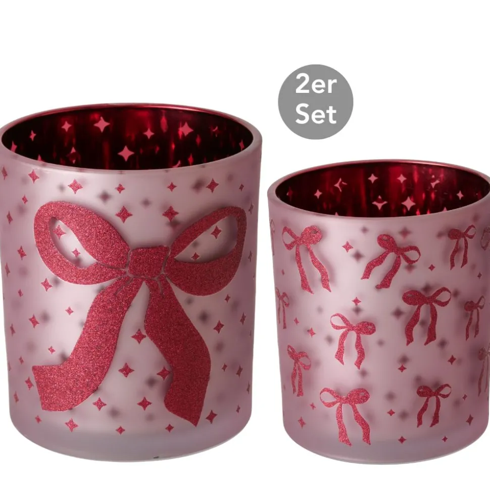 Das 2er-Set Schleifen Windlichter Ida schenkt Deinem Zuhause in der Weihnachtszeit ein warmes, stimmungsvolles Licht. Die zarten Schleifen-Akzente verleihen jedem Windlicht eine liebevolle, persönliche Note und zaubern eine heimelige Atmosphäre. Ob auf dem Fensterbrett, dem Esstisch oder im Regal – diese Windlichter verbreiten sanftes Kerzenlicht, das die festliche Stimmung unterstreicht und für Geborgenheit sorgt. Ihr charmantes Design macht sie zu einem dekorativen Highlight. Perfekt für gemeinsame Stunden oder stille Momente: Mit diesem Set holst Du Dir ein Stück Weihnachtszauber ins Haus, das Herz und Heim gleichermaßen wärmt.