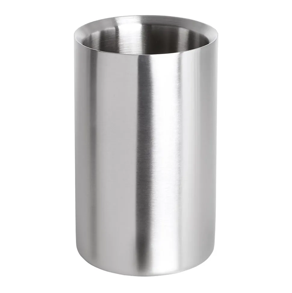 Dieser silberfarbene Flaschenkühler von Blomus sieht nicht nur einfach stilvoll aus, sondern ist dank der doppelten Wand aus Edelstahl auch einfach praktisch. So hält der Flaschenkühler Deinen Wein länger kühl, sodass Du Deine Abende zu zweit oder mit den Freunden, der Familie, ganz in Ruhe genießen kannst. Mit einer Größe von 19,5 x 12 cm passen gängige Weinflaschen in den Blomus Flaschenkühler.