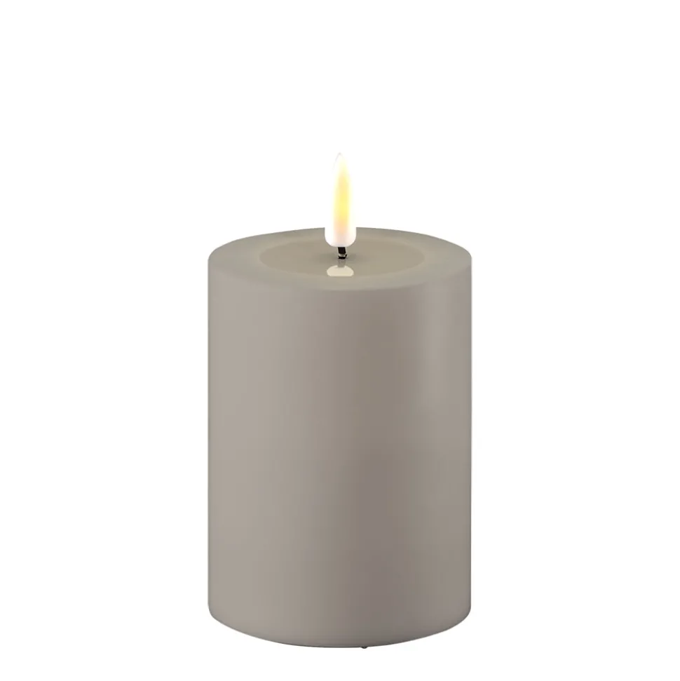 DELUXE LED Stumpenkerze Grau 7,5 x 10 cm Outdoor