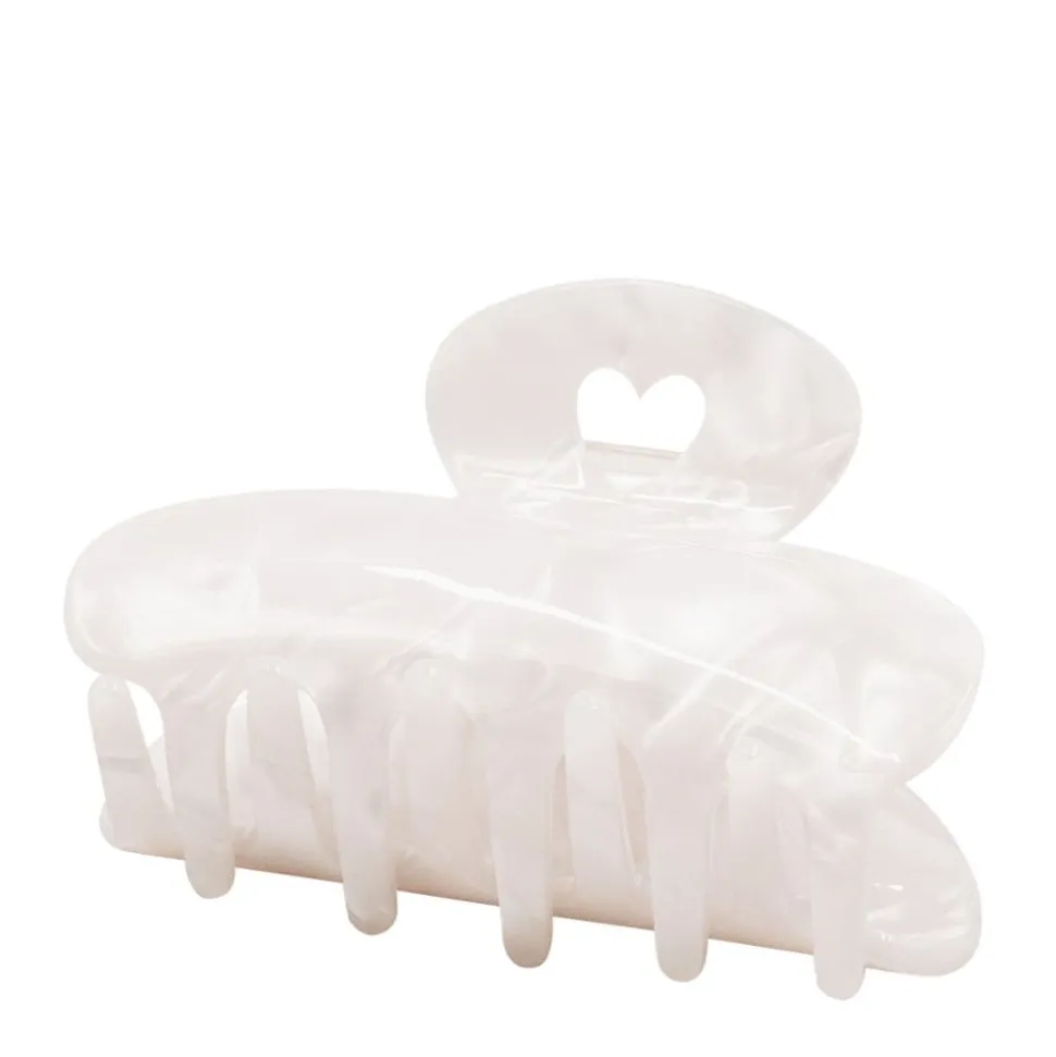 Diese Haarspange von Eulenschnitt verleiht Dir mit den eingearbeiteten Herzchen einen Hauch von Romantik. Der weiße Perlmuttschimmer wird toll in Deinem Haar wirken. Mit einer Länge von 7 cm und einer Breite von 4 cm ist diese Haarspange ein echter Hingucker.
