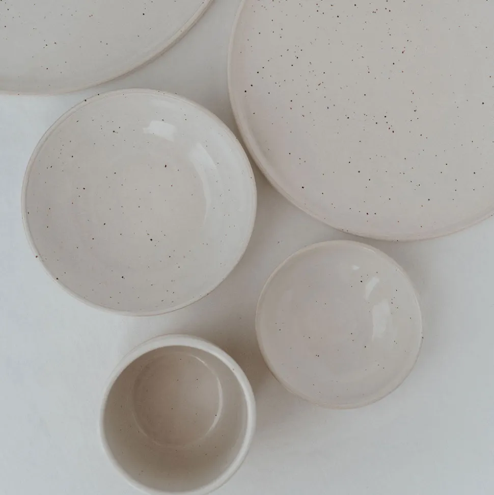 Mit dem 2er-Set Mini Schüsseln Calma von Eulenschnitt ziehen handgemachte Schmuckstücke in Dein Zuhause ein. Aus Steingut gefertigt, werden Dich die Form, der Ton und die individuelle Glasur mit den Effekten sicher begeistern – jede einzelne Schüssel ist ein echtes Unikat. Das minimalistische geradlinige Design und die natürliche Farbgebung sind total im Trend, da schlägt das Herz jedes Individualisten höher. Die Schalen messen 10cm im Durchmesser und eignen sich perfekt für Dips und Saucen. Bei uns im Shop findest Du noch weitere Geschirrteile aus dieser einmaligen Serie von Eulenschnitt. Schau doch mal rein und verlieb Dich!