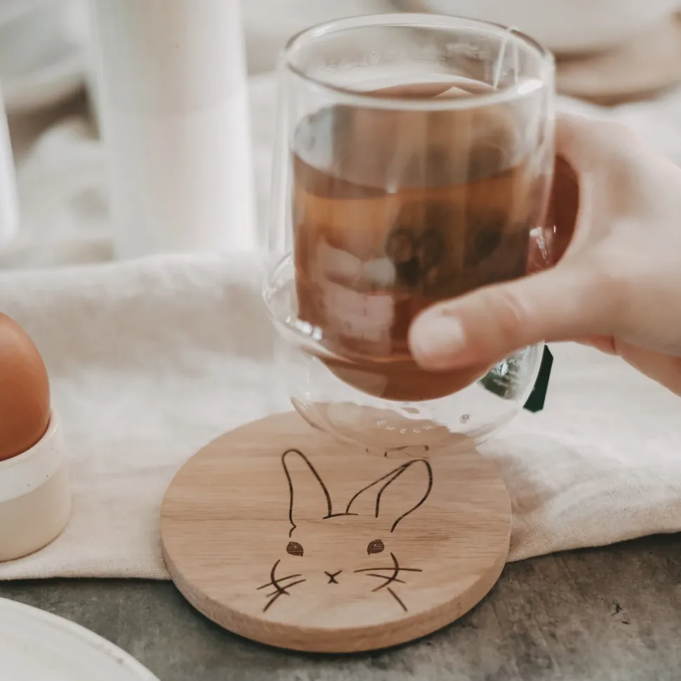 Auf diesem niedlichen Häschen möchte man fast kein Glas abstellen! Wagt man es dennoch, schützt der 11 cm große Untersetzer aus Eiche Deine Möbel vor hässlichen Getränkekringeln und bereichert Deine österliche Tischdekoration. Entdecke die natürlichen Produkte von Eulenschnitt und lasse Dich inspirieren.