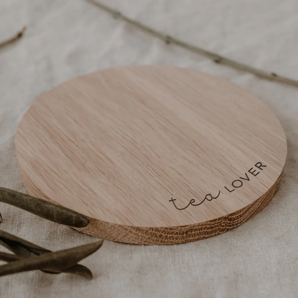 Eulenschnitt Untersetzer aus Eiche Tea Lover