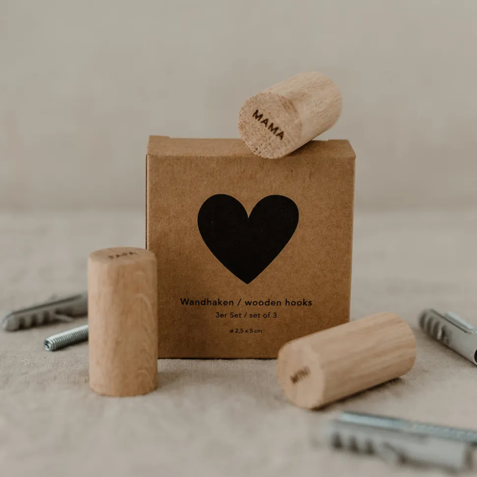 Diese Wandhaken von Eulenschnitt sind nicht nur praktisch, sondern auch absolut im Trend. Du kannst Sie in jedem Raum problemlos platzieren. Es ist für jedes Familienmitglied ein Haken dabei. Die Wandhaken sind aus Eichenholz gefertigt und haben einen Durchmesser von 2,5 cm und eine Länge von 5 cm.