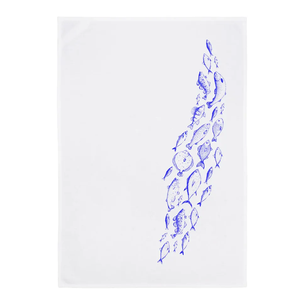 Geschirrtuch Weiß Fischschwarm Blau