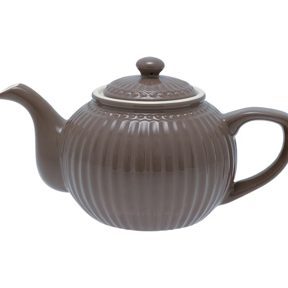 Wenn es draußen kälter und die Tage kürzer werden, machen wir es uns mit einer Tasse Tee in der Hand gemütlich. Die Teekanne Alice in Schokolade darf auf keinen Fall in deinem Schrank fehlen, denn das zarte Wellenmuster und die tollen Farben machen sie zum Hingucker. Nicht umsonst ist die Alice Kollektion unser absoluter Liebling, denn sie lässt sich nicht nur untereinander, sondern auch mit den anderen Greengate Serien toll kombinieren. Ob Kaffee oder Tee, die Kanne Alice wird dich sicherlich begeistern. In unserem Shop findest du noch weitere Produkte aus der Alice Serie von Greengate. Lass dich inspirieren!