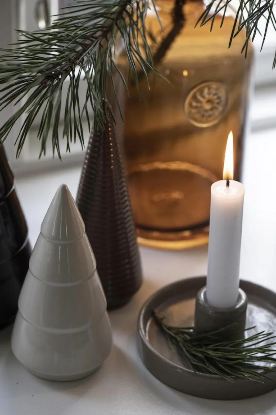 Eine helle Kerze würde die dunkle Farbe des IB Laursen Kerzenhalter für Stabkerzen Dunkelgrau regelrecht unterstreichen. Aus Porzellan gefertigt und mit einem Durchmesser von 11,5 cm fällt der Kerzenhalter von IB Laursen auf jedem Möbelstück auf!