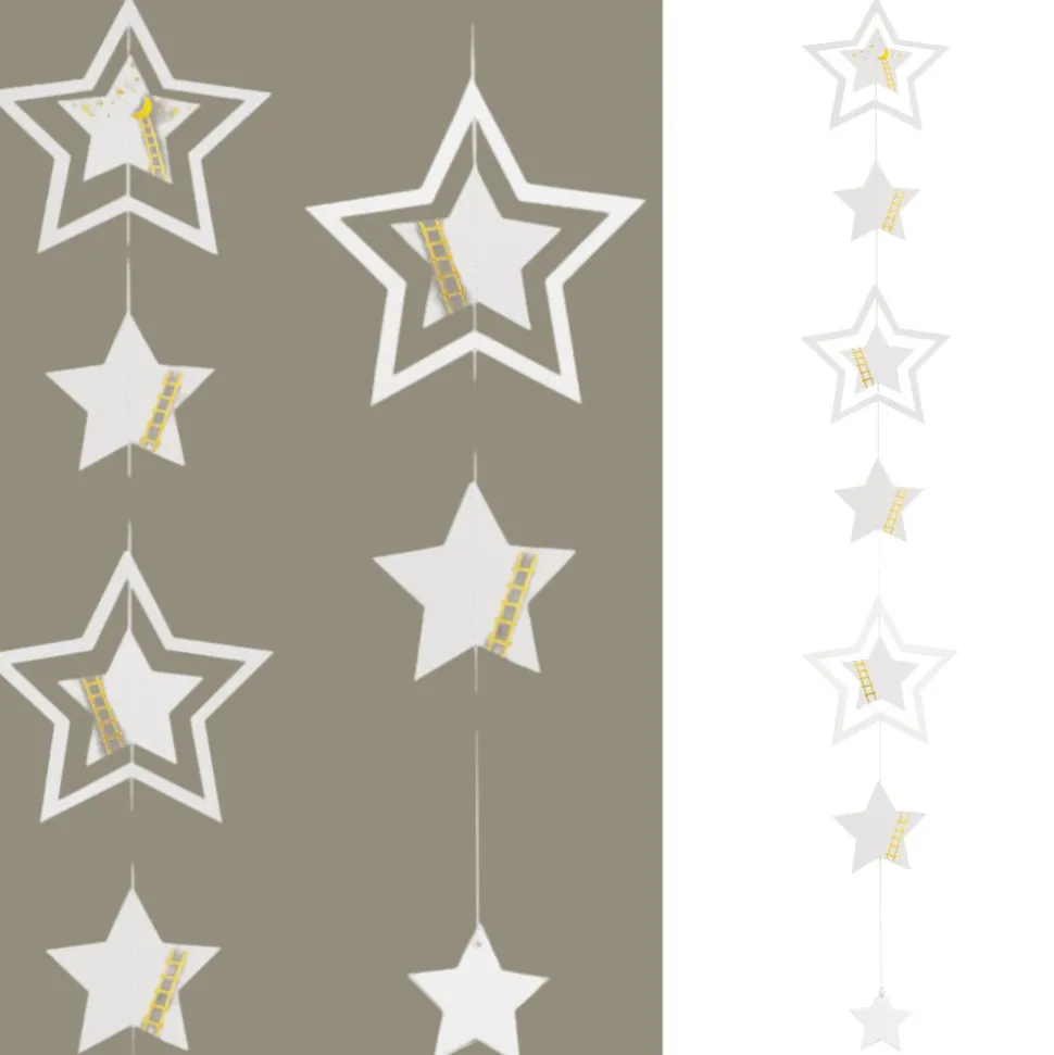Die brandaktuellen Produkte der Firma Räder wollen viel mehr sein als nur Weihnachtsdekoration. Sie wollen bei jedem Betrachten Deine Gedanken anregen und Dich kleine Traumreisen unternehmen lassen. Daher stammt diese schöne Kette auch aus der 2025er Weihnachtskollektion Papiergeschichten. Die Kette ist 85 cm lang und aus Papier gefertigt, genäht mit glänzendem, goldfarbenem Hotfoil.
