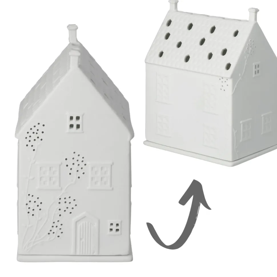 Wer mag in diesem verborgenen Haus wohl wohnen? Licht brennt in dem Landhäuschen schon. Du kannst es zwischen den Pflanzenranken rund um die Häuserwände hindurch schimmern sehen. Ist es die heimliche Werkstatt der Weihnachtswichtel? Lebt hier die gute Fee, die manchmal Wünsche erfüllt? Mit diesem Lichthaus tauchst Du Dein Heim in eine verwunschene Märchenwelt.Ob auf dem Fensterbrett, dem Sideboard oder als stimmungsvoller Blickfang im Eingangsbereich – das Lichthaus verleiht Deinen Räumen ein warmes, einladendes Flair. Sein verspieltes Design verbindet rustikalen Charme mit zeitloser Eleganz und passt perfekt zu einem gemütlichen Cottage-Stil und einem natürlichen Landhaus-Ambiente.Das Lichthaus ist ideal, um kleine Teelichter sicher auf der Bodenplatte zu platzieren und zu inszenieren. So kannst Du ganz einfach für entspannte Momente sorgen – alleine oder mit lieben Menschen. Die zarten Ranken verleihen dem Haus ein lebendiges Spiel aus Licht und Schatten, das zum Träumen einlädt.Kombiniere das kleine Landhäuschen mit weiteren Lichthäusern aus der Räder Kollektion und schaffe Dir eine kleine Fantasiewelt voller Charme und Wärme.Entdecke die Geschichten von Räder, werde Teil von Ihnen und vergiss den Alltag für einen wertvollen Augenblick.