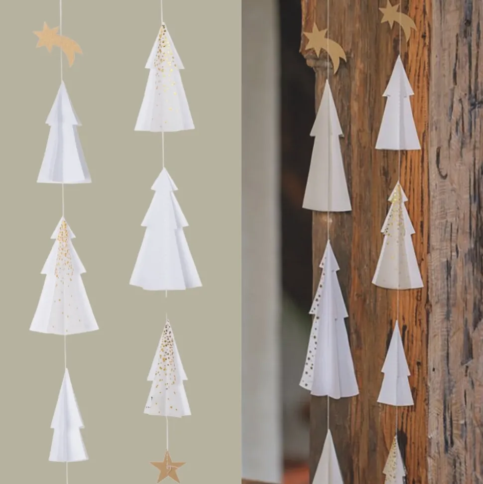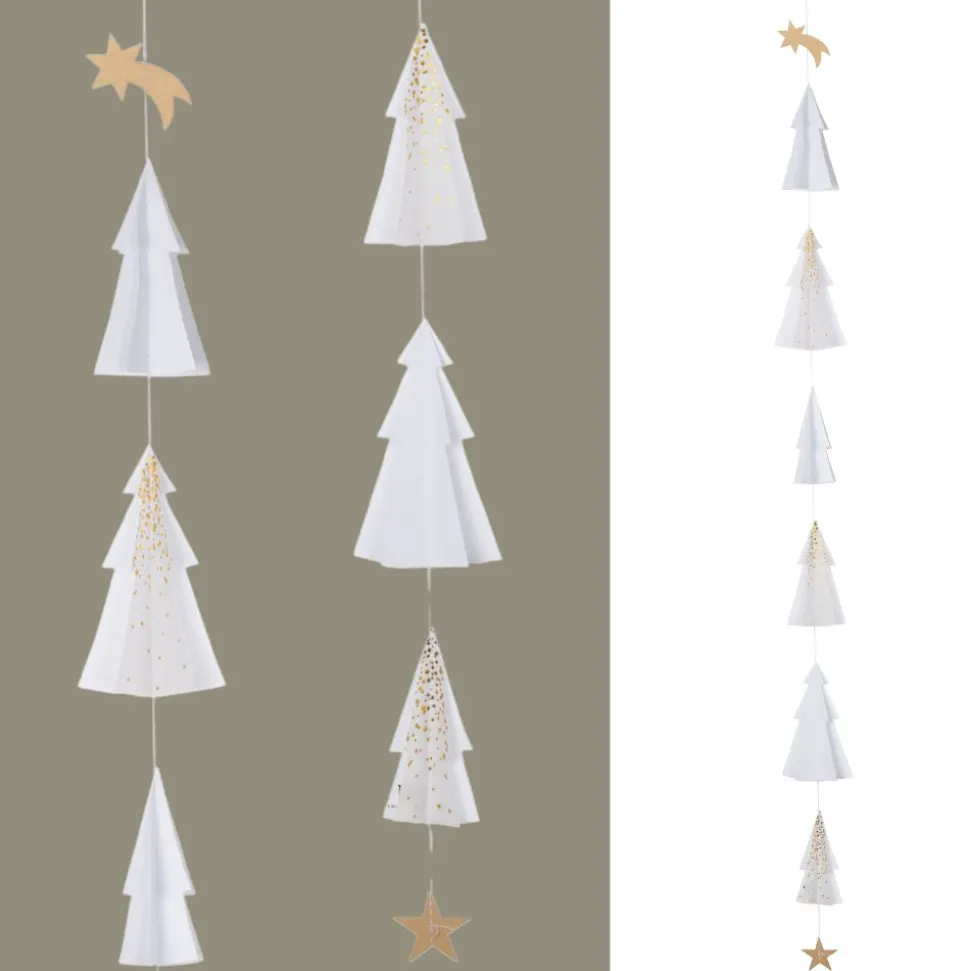 Die Tannenkette gibt es in zwei Versionen mit unterschiedlicher Länge und unterschiedlich vielen aus Papier gefertigten Bäumen. Die längere Version enthält sechs Tannenbäume und hat eine Länge von 76 cm, womit sie sich wunderbar für Deine Fenster oder Türen eignet. Schau Dir gerne auch hier in unserem Onlineshop die kürzere Version an und lass Dich von der Stimmung, die diese Ketten vermitteln, verzaubern.