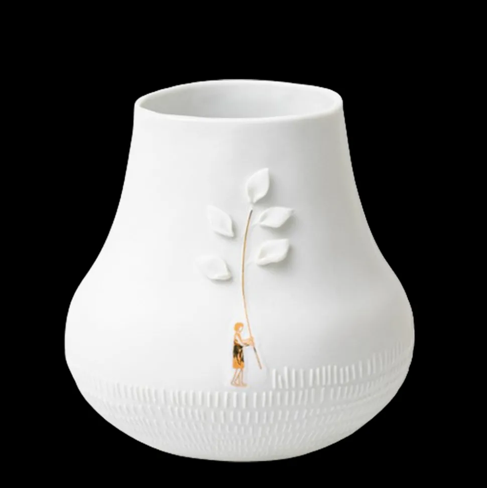 Die Räder Vase Wiese wird zum trendigen Hingucker auf dem Tisch, der Kommode oder dem Sideboard. Egal ob mit oder ohne Blumen! Die Blätter Prägungen im Porzellan, die zum Zweig der goldfarbenen Frau gehören, geben der Vase das schöne Gesamtbild, das alle Blicke auf sich ziehen wird. Die Porzellan-Vase von Räder hat übrigens eine Größe von 11 x 11 cm.