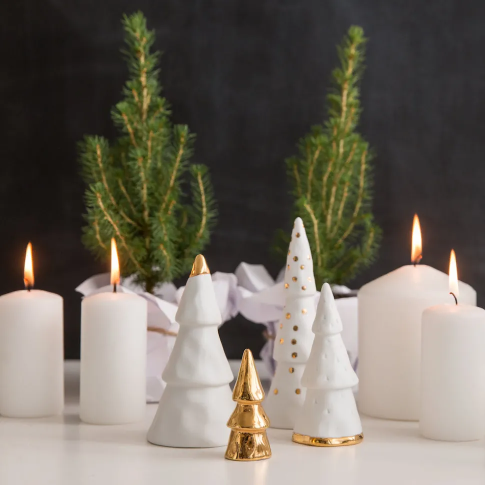 Das schicke Räder Weihnachtswald 4er-Set sorgt mit seinen goldfarbenen Details für einen tollen Hingucker in der Weihnachtszeit. Besonders wenn der Kerzenschein auf die goldfarbenen Porzellantannen von Räder fällt, zieht festliche Stimmung in Dein schönes Zuhause ein.