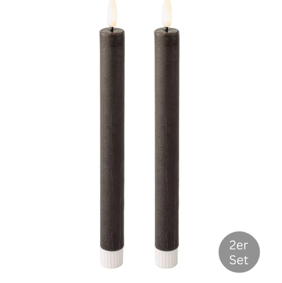 Spitzkerze LED Flackereffekt 2er Set H 24,5 cm grau