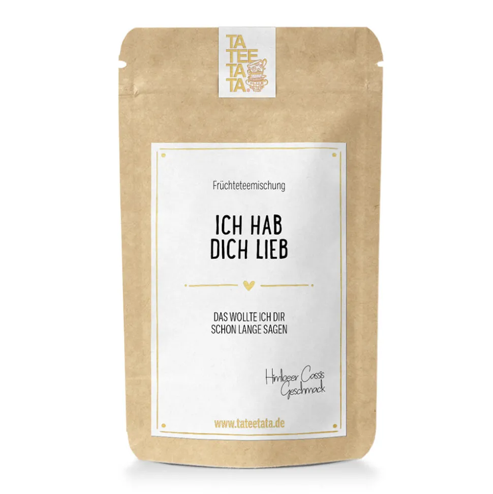 Hibiskusblüten, Hagebuttenschalen, Apfelstücke, Fliederbeeren, Zuckerherzen rosa (Zucker, Reismehl, Reisöl, Kartoffelstärke, Aroma, Rote Bete Saftkonzentrat), Aroma, Bergblaubeerblätter, gefr.-getr. ganze Himbeeren, gefr.-getr. Johannisbeeren.